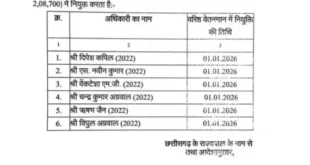 рд░рд╛рдпрдкреБрд░ред рд░рд╛рдЬреНрдп рд╢рд╛рд╕рди рдиреЗ рдкреНрд░рд╢рд╛рд╕рдирд┐рдХ рдлреЗрд░рдмрджрд▓ рдХрд░рддреЗ рд╣реБрдП рджреЛ рднрд╛рд░рддреАрдп рд╡рди рд╕реЗрд╡рд╛ (IFS) рдЕрдзрд┐рдХрд╛рд░рд┐рдпреЛрдВ рдХрд╛ рд╕реНрдерд╛рдирд╛рдВрддрд░рдг рдХрд┐рдпрд╛ рд╣реИ, рдЬрдмрдХрд┐ рдкрд╛рдВрдЪ рдЕрдзрд┐рдХрд╛рд░рд┐рдпреЛрдВ рдХреЛ рд╡рд░рд┐рд╖реНрда рд╡реЗрддрдирдорд╛рди рдкрд░ рдкрджреЛрдиреНрдирддрд┐ рджреА рдЧрдИ рд╣реИред рдкрджреЛрдиреНрдирдд рдЕрдзрд┐рдХрд╛рд░рд┐рдпреЛрдВ рдХреА рдлрд┐рд▓рд╣рд╛рд▓ рдирдИ рдкрджрд╕реНрдерд╛рдкрдирд╛ рдирд╣реАрдВ рдХреА рдЧрдИ рд╣реИред рд╕реНрдерд╛рдирд╛рдВрддрд░рд┐рдд рдЕрдзрд┐рдХрд╛рд░рд┐рдпреЛрдВ рдореЗрдВ- рдЬрд╛рдзрд╡ рд╕рд╛рдЧрд░ рд░рд╛рдордЪрдВрджреНрд░ рдХреЛ рдЙрдк рд╡рди рд╕рдВрд░рдХреНрд╖рдХ, рд▓рдШреБ рд╡рдиреЛрдкрдЬ рд╕рдВрдШ рдХреЗ рдкрдж рдкрд░ рдкрджрд╕реНрде рдХрд┐рдпрд╛ рдЧрдпрд╛ рд╣реИред рдЪрдВрджреНрд░ …