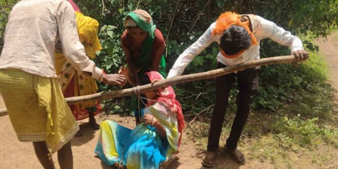 गर्भवती महिला को कांवड़ में ढोकर अस्पताल ले गए परिजन