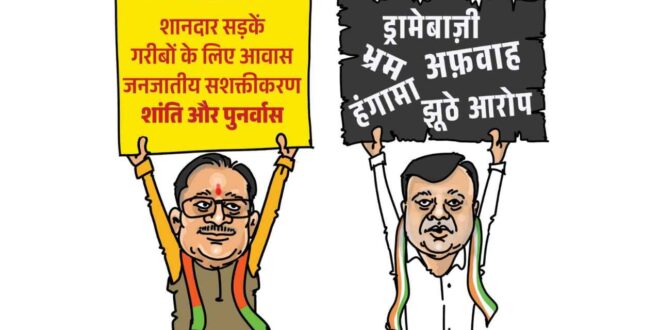 बीजेपी ने सोशल मीडिया पर कार्टून पोस्टर करते हुए कांग्रेस पर निशाना साधा है. इस दौरान बीजेपी ने सोशल मीडिया एक्स पर पोस्ट करते हुए बीजेपी और कांग्रेस के बीच के शासनकाल की तुलना की है. गरीब जनजातीय विकास शांति और पुनर्वास की बात लिखी है तो वहीं दूसरी ओर कांग्रेस के शासनकाल को ड्रामेबाज भ्रम और अफवाह जैसे शब्दों के साथ संबोधित किया गया है.