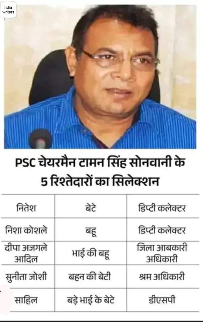पुराने मुख्यमंत्री भूपेश बघेल ने जब लोक सेवा आयोग में फर्जीवाड़ा का मुद्दा सुलग रहा था तब प्रेस वार्ता में बोले थे ” क्या नेता, अधिकारी, और व्यवसायियों के बच्चे प्रतिभावान नहीं हो सकते? बिल्कुल हो सकते है लेकिन ऐसे प्रतिभावान? जिनको टोमन सिंह और आरती वासनिक कोलकाता से प्रिंटर्स को बुलाकर प्रीलिम और मेंस एग्जाम के पेपर के सेट की चोरी करके प्रतिभावान बना दे ऐसा नहीं हो सकता। यही कारण था कि दिल्ली के एक पत्रकार ने भूपेश बघेल से पूछा था आपके नाक के नीचे टोमन सिंह इतना बड़ा घोटाला कर गए आपको पता नहीं चला? भूपेश बघेल खिसिया गए थे।