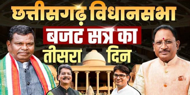 छत्तीसगढ़ विधानसभा बजट सत्र का आज तीसरा दिन है. आज सदन में राज्यपाल के अभिभाषण पर आज चर्चा होगी. मुख्यमंत्री विष्णुदेव साय और डिप्टी सीएम विजय शर्मा पत्रों को पटल पर रखेंगे.