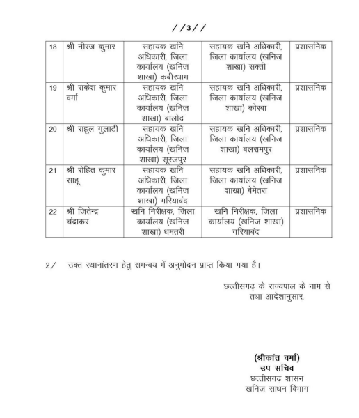 22 खनिज अधिकारियों का ट्रांसफर