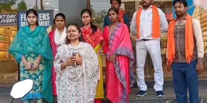 मंगलवार को धर्म जागरण समिति की सह संयोजिका भारती वैष्णव के नेतृत्व में कार्यकर्ताओं ने शोरूम में प्रवेश कर “जय श्री राम” के नारे लगाए. इस दौरान उन्होंने कर्मचारियों से उनके नाम पूछे और कुछ को तिलक भी लगाया.