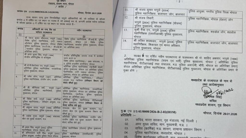 MP IPS Transfer: एमपी में 14 IPS अधिकारियों का हुआ तबादला, संजय कुमार बने भोपाल के पुलिस कमिश्नर