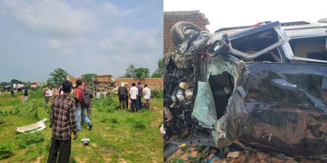 घटना अनूपपुर जिले के राष्ट्रीय राजमार्ग क्रमांक 43 के समीप थाना रामनगर क्षेत्र की की है. यहां बेलिया से झिरीयाटोला के बीच में सोमवार को दर्दनाक रोड एक्सीडेंट में 5 लोगों की मौत हो गई. जानकारी के मुताबिक एक स्कॉर्पियो कार झिरिया टोला से ग्राम बेलिया की ओर आ रही थी. इस दौरान सामने से तेज रफ्तार में दो मोटरसाइकिल सवार आ गए स्कॉर्पियो कर भी अपनी रफ्तार में थी और दोनों नियंत्रण खो बैठे जिसकी वजह से घटना घटित हुई जहां मौके पर ही दो लोगों ने दम तोड़ दिया वहीं अस्पताल पहुंचते पहुंचते तीन और व्यक्तियों की मौत हो गई एवं दो घायलों को नजदीकी सामुदायिक स्वास्थ्य केंद्र उपचार हेतु पहुंचाया गया जहां प्राथमिक उपचार के बाद घायलों को जिला अस्पताल रेफर कर दिया गया है, घटना की जानकारी लगने के बाद आसपास के ग्रामीण व थाना रामनगर की टीम पहुंच गई है।