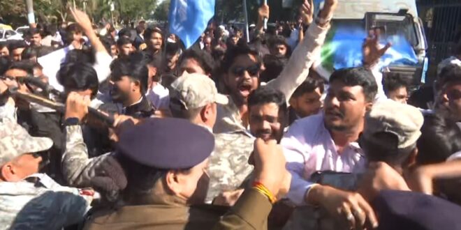एनएसयूआई कार्यकर्ताओं के प्रदर्शन को देखते हुए पुलिस ने बैरीकेडिंग की थी, लेकिन कार्यकर्ताओं ने बैरीकेडिंग तोड़कर मंत्री के बंगले की तरफ कूच किया. इस दौरान पुलिस और एनएसयूआई कार्यकर्ताओं के बीच झड़प देखी गई. इसके बाद एनएसयूआई कार्यकर्ता मंत्री के बंगले के बाहर ही बैठ गए और प्रदर्शन करने लगे.
