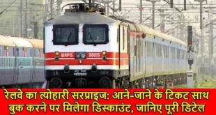 Read More »рд░реЗрд▓рд╡реЗ рдХрд╛ рддреНрдпреЛрд╣рд╛рд░реА рд╕рд░рдкреНрд░рд╛рдЗрдЬ: рдЖрдиреЗ-рдЬрд╛рдиреЗ рдХреЗ рдЯрд┐рдХрдЯ рд╕рд╛рде рдмреБрдХ рдХрд░рдиреЗ рдкрд░ рдорд┐рд▓реЗрдЧрд╛ рдбрд┐рд╕реНрдХрд╛рдЙрдВрдЯ, рдЬрд╛рдирд┐рдП рдкреВрд░реА рдбрд┐рдЯреЗрд▓