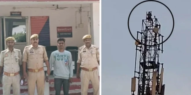 मोबाइल टावर पर चढ़ा युवक