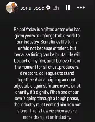 सोनू सूद ने राजपाल यादव के सपोर्ट में शेयर किया पोस्ट