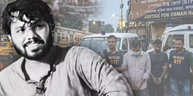 पश्चिम बंगाल पुलिस की स्पेशल टास्क फोर्स (STF) ने बांग्लादेश के छात्र नेता और राजनीतिक कार्यकर्ता उस्मान हादी की हत्या के मामले में दो आरोपितों फैसल करीम मसूद और आलमगीर हुसैन को गिरफ्तार किया है। दोनों बांग्लादेशियों को भारत-बांग्लादेश सीमा से लगे बनगाँव इलाके से 7 और 8 मार्च 2026 की रात पकड़ा गया। पुलिस के अनुसार, हत्या के बाद दोनों आरोपित अवैध रूप से भारत में दाखिल हो गए थे और मौका मिलने पर वापस बांग्लादेश भागने की योजना बना रहे थे।